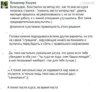 Пост "обнажил" все уловки ума и стала четко видна его "работа", кроме этого тело в пост почистилось и сигналы от него стали сильнее".