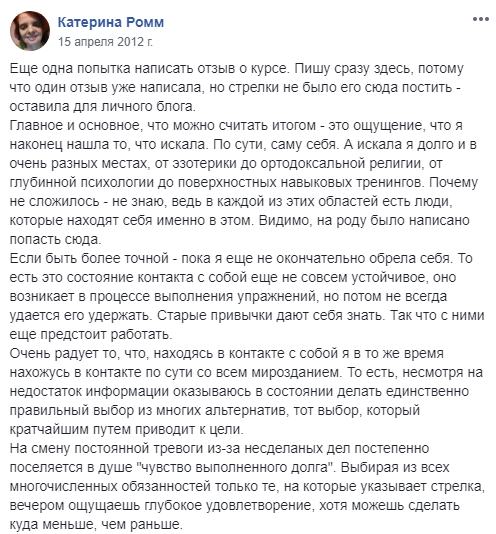 Еще одна попытка написать отзыв о курсе. Пишу сразу здесь, потому что один отзыв уже написала, но стрелки не было его сюда постить - оставила для личного блога.